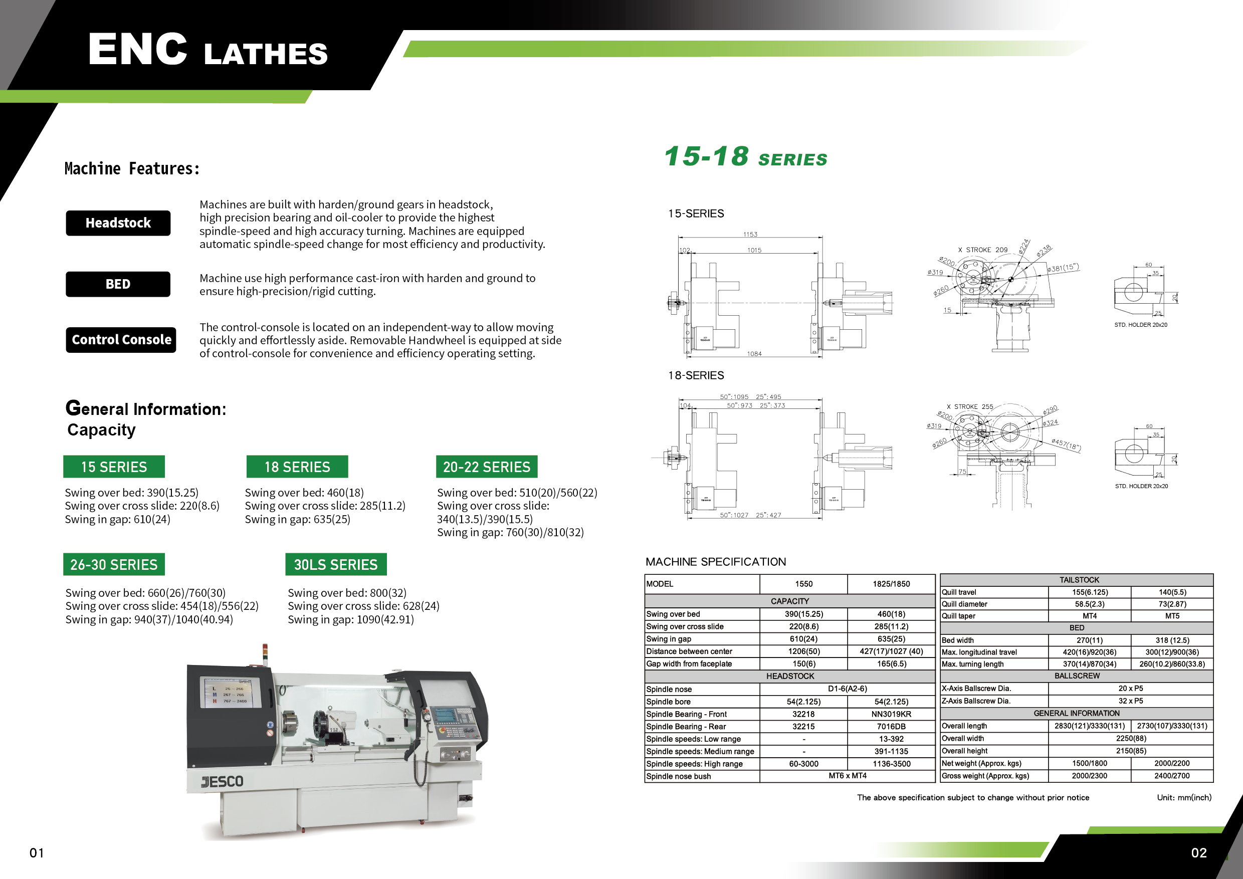 | Tailstock barrel diameter | 58.5 (2.3) | 73 (2.87) | ||